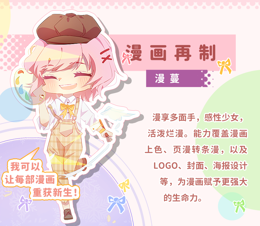 58动漫于2017年成立于北京,现已在香港、成都、沈阳三地设有子公司,业务涉及动漫本地化、动漫版权代理、动漫再制、原创动漫创作等多个领域。 我们的理念:择一事终一生,58动漫希望做动漫行业的匠人,希望为每个用户提供极致的服务和作品。
